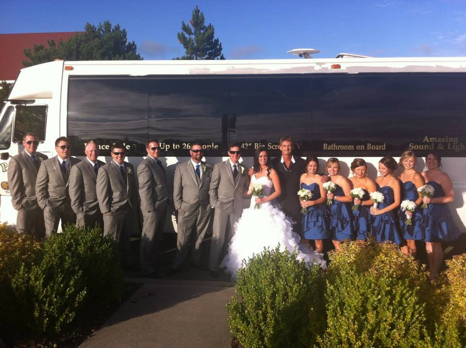 Consider the convenience of having all of your wedding party together. The bus can fit 30 people comfortably, so you can have parents, the groomsmen, bridesmaids and more! No worrying about everyone showing up on time for pictures or someone from out of town getting lost. Everyone can relax on the couch like leather seats, have a drink, dance and party to and from the church because you are all in one vehicle! Think about the UNBELIEVABLE convenience of have a private bathroom for your group wherever you go! No Limo can compare to that!